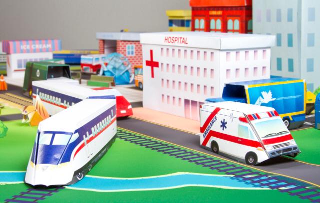 The kit includes 75 models to fold (with step-by-step instructions), 104 sheets of specially printed origami paper with numbers and lines for folding, and a full-color foldout play mat with roads and more.