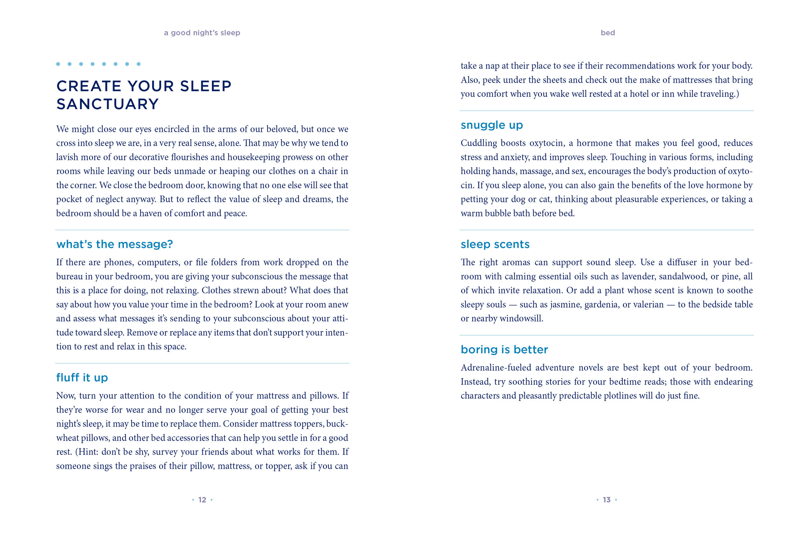 “Soothing as a lullaby, Gover’s latest work is the print version of being tucked into bed with a warm glass of milk. Bringing her yoga and mindfulness training to shed light (or perhaps dark) on how to get a good night’s rest in this 24/7, go-go-go world, the author asks us to slow down and contemplate the value and importance of how we spend one-third of our lives. Both science facts and quotes from poets lace the pages with reasons why we would want to sleep better and explore our dreams. Gover provides a linear progression of nuts-and-bolts advice on how to get to sleep, stay asleep, experience lucid dreaming, remember dreams, keep a dream journal, and wake up with a smile. It’s all told with gentle prose that makes this book delightful and inspiring as well as practical. VERDICT For anyone who has ever had trouble falling or staying asleep or who is at all interested in interpreting their dreams.” — Library Journal, starred review