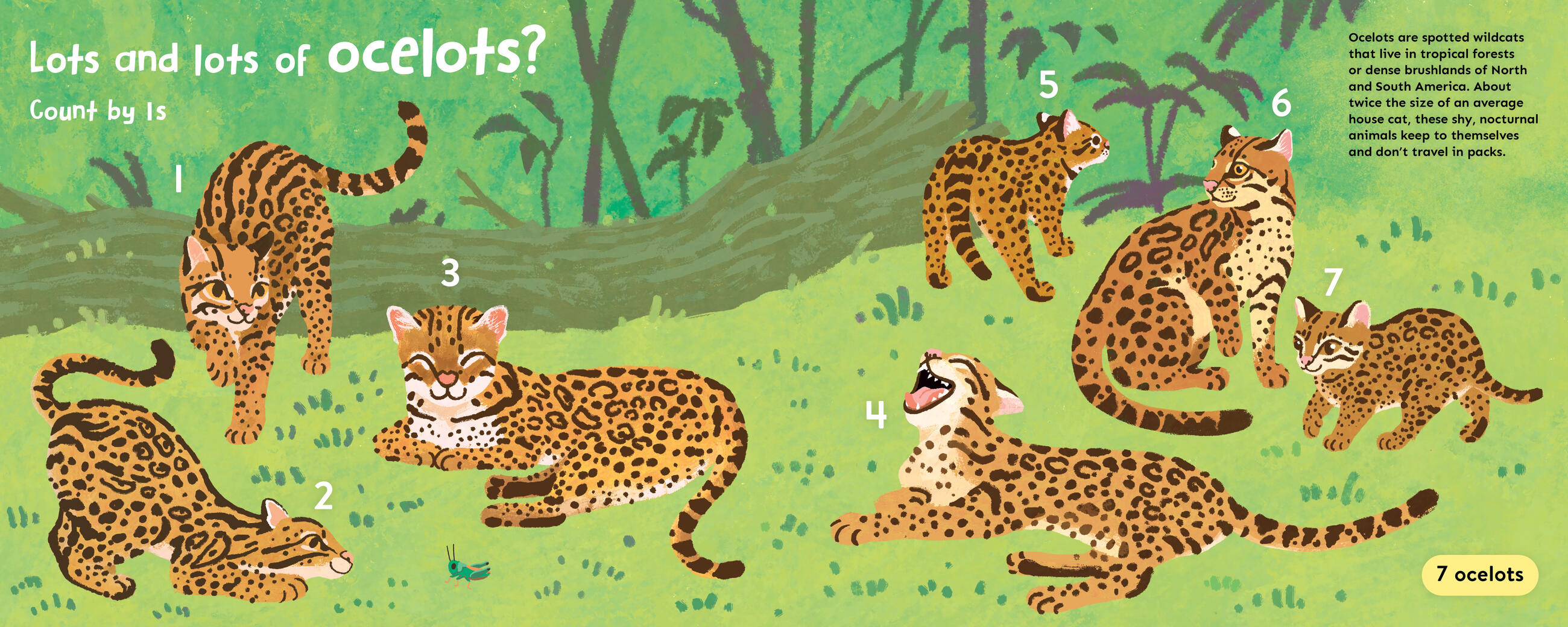 How do you count lots and lots of ocelots? Or pile and piles of crocodiles? By 1s, 2s, 5s, and 10s, that’s how! Children ages 5-7 learn the magic of skip counting—a key math skill in elementary curriculum—via silly rhymes and memorable groupings of animals.