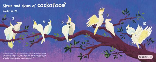 Engaging full color art encourages little fingers to count along, rhyming text encourages little voices to read along, and animal facts on every spread add an additional layer for rereading. Backmatter includes more skip counting activities and math support.