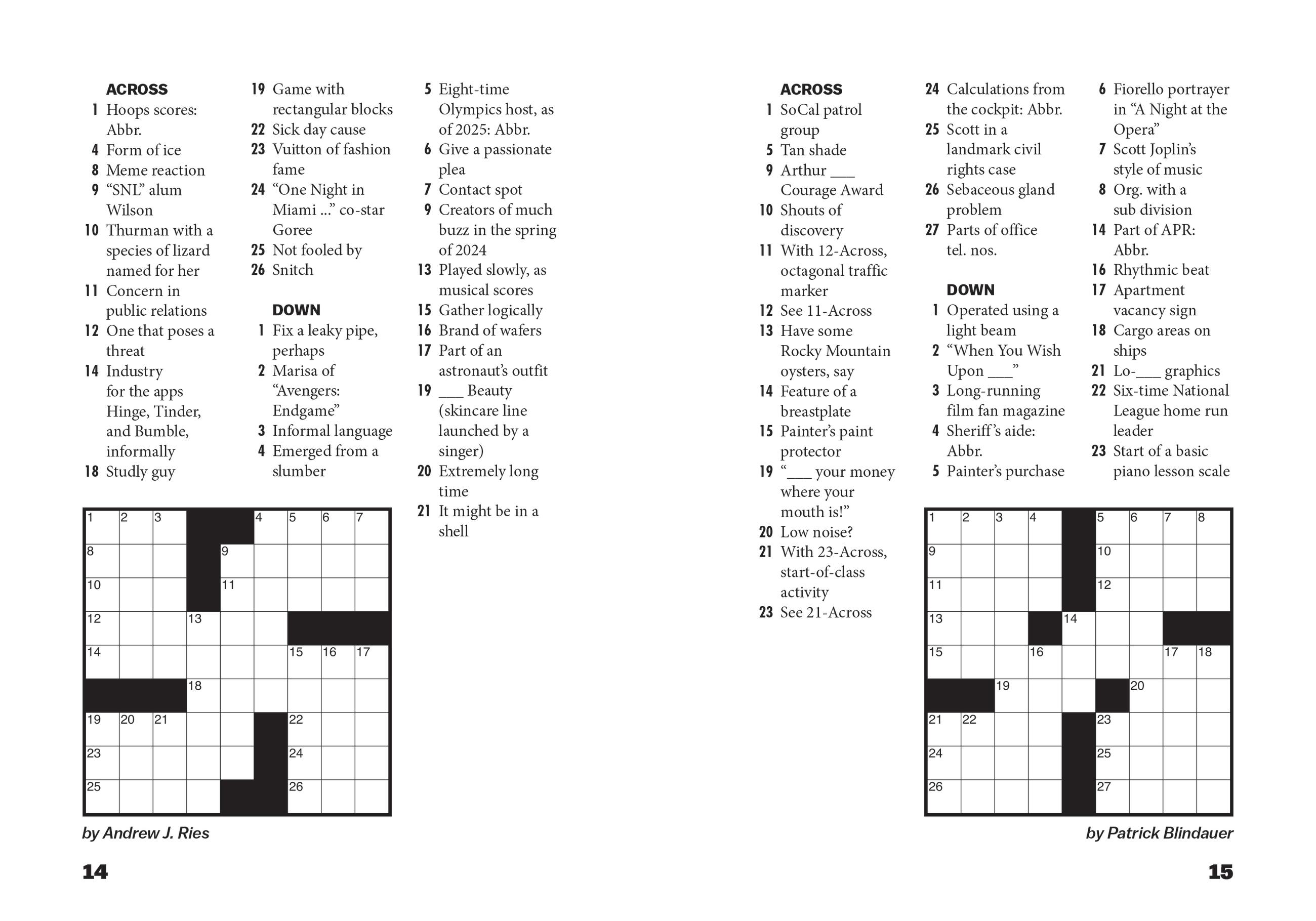 You’ll be amazed at how much entertainment fits inside this tiny little package! These 9×9 crosswords featuring mini themes and current pop culture references are friendly and accessible to casual solvers, while offering some unexpected twists for experts, thanks to Vox.com’s all-star crew of crossword constructors: Patrick Blindauer, Juliana Tringali Golden, Adesina Koiki, Will Nediger, and Andrew J. Ries.