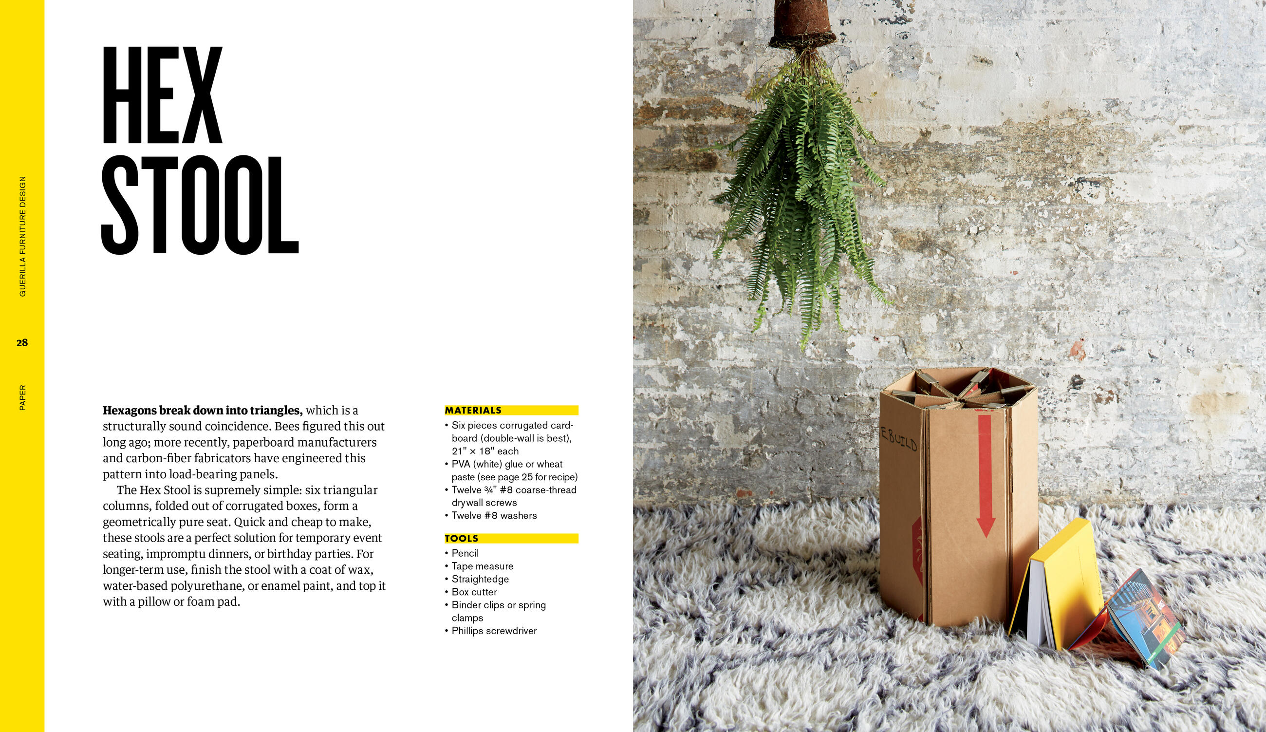 Build stylish and functional furniture from salvaged materials. This innovative guide presents dozens of strategies for upcycling scrap cardboard, metal, plastic, or wood into dependable shelving units, sturdy tables, and fun lamps. With directions for 35 easy and inexpensive projects that include a Cardboard Cantilever Chair, a License Plate Bowl, a Conduit Coatrack, and much more, you’ll be inspired to start filling your home with unique high-style furniture that makes sense for both your wallet and the environment.