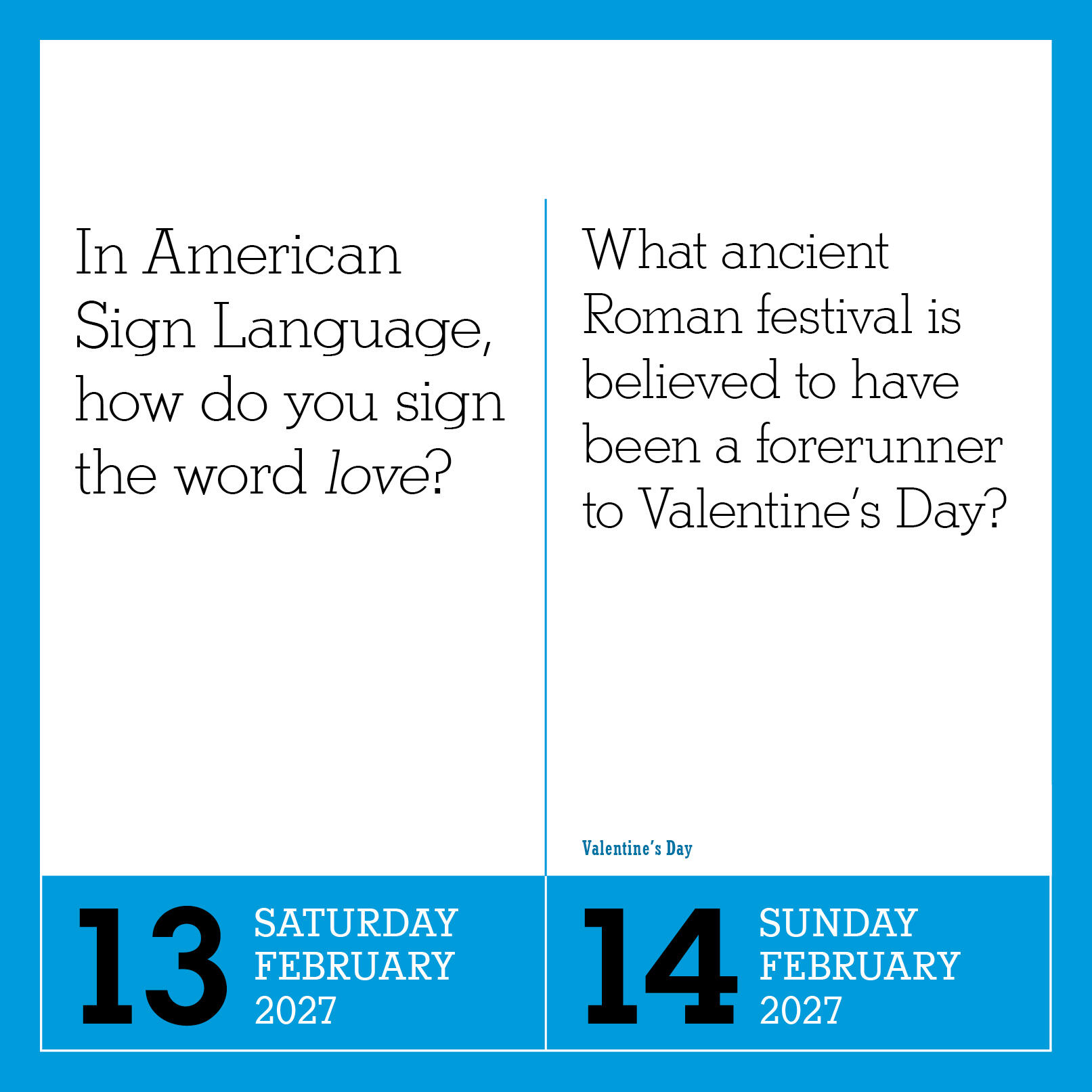 - FUN FOR THE WHOLE FAMILY: A year of fun, surprising, and delightful questions covering a wide range of subjects, including science, history, pop culture, language, and more! Quiz yourself daily—and if you don’t know the answer, find it on the reverse side of each page.