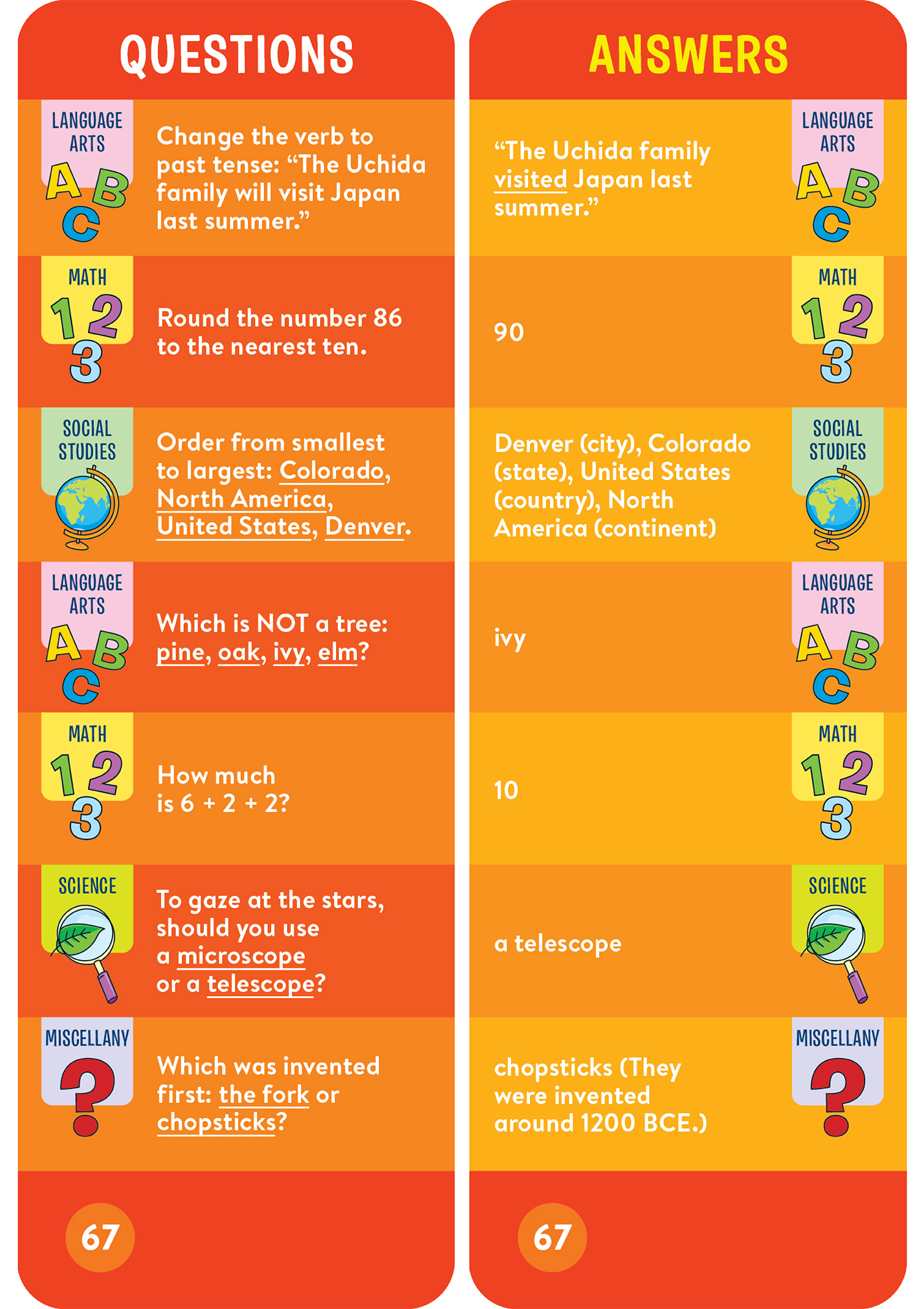 • 1,000 questions and answers covering math, language arts, science, and more