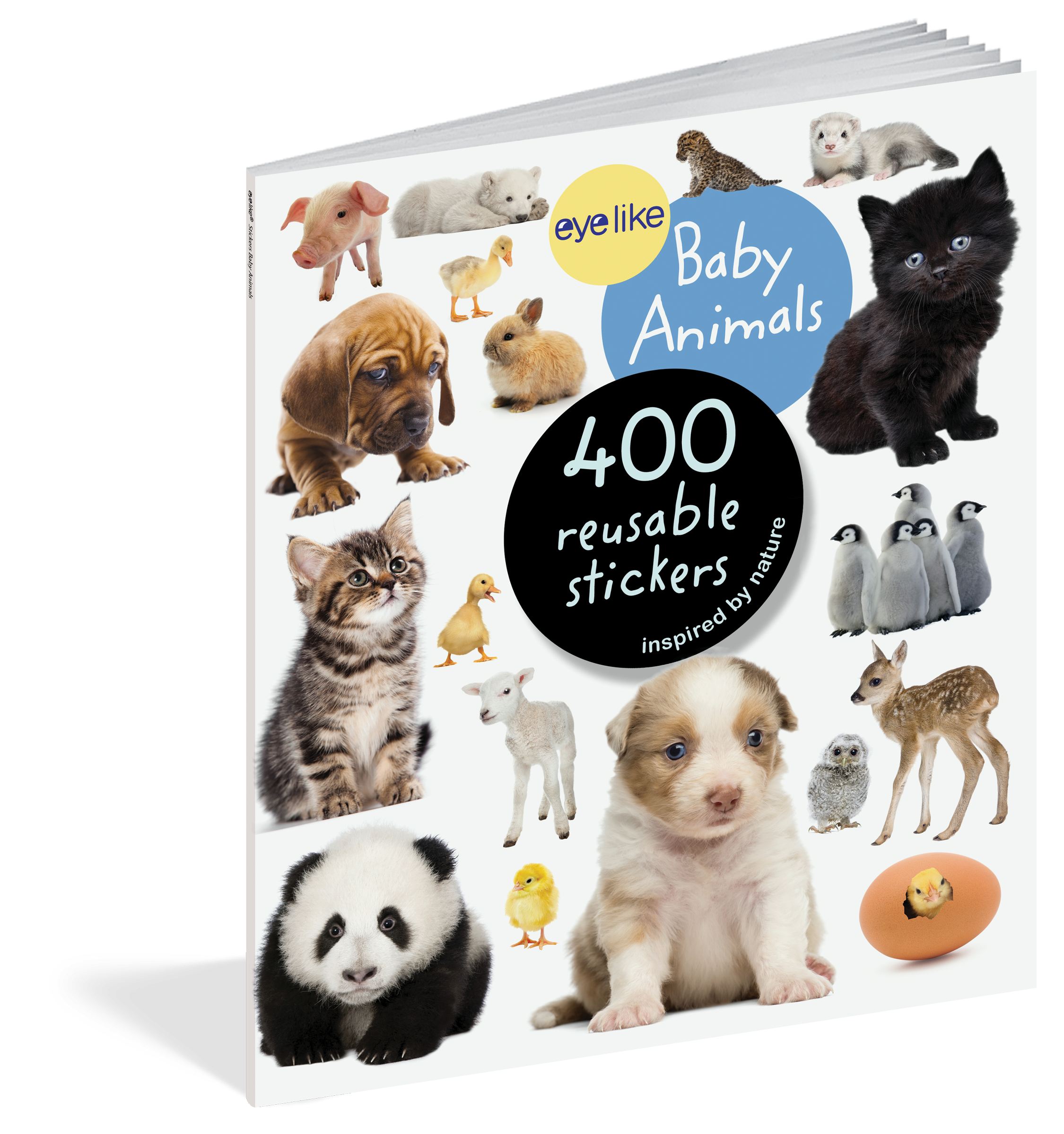 Full-color photographic stickers feature a variety of adorable baby animals, from roly-poly pandas and fluffy bunnies to pink piglets, fuzzy owlets, cuddly puppies, and more! Whether on windows, notebooks, lunch boxes, or scrapbooks, these peel-and-place stickers are perfect for creating your own work of art anytime, anywhere, and are designed to be stuck on, peeled off, and stuck on again without tearing or losing their “stick.” The books’ inside covers are glossy illustrated backgrounds on which kids can create lively and original sticker scenes―and then change them whenever they like.
