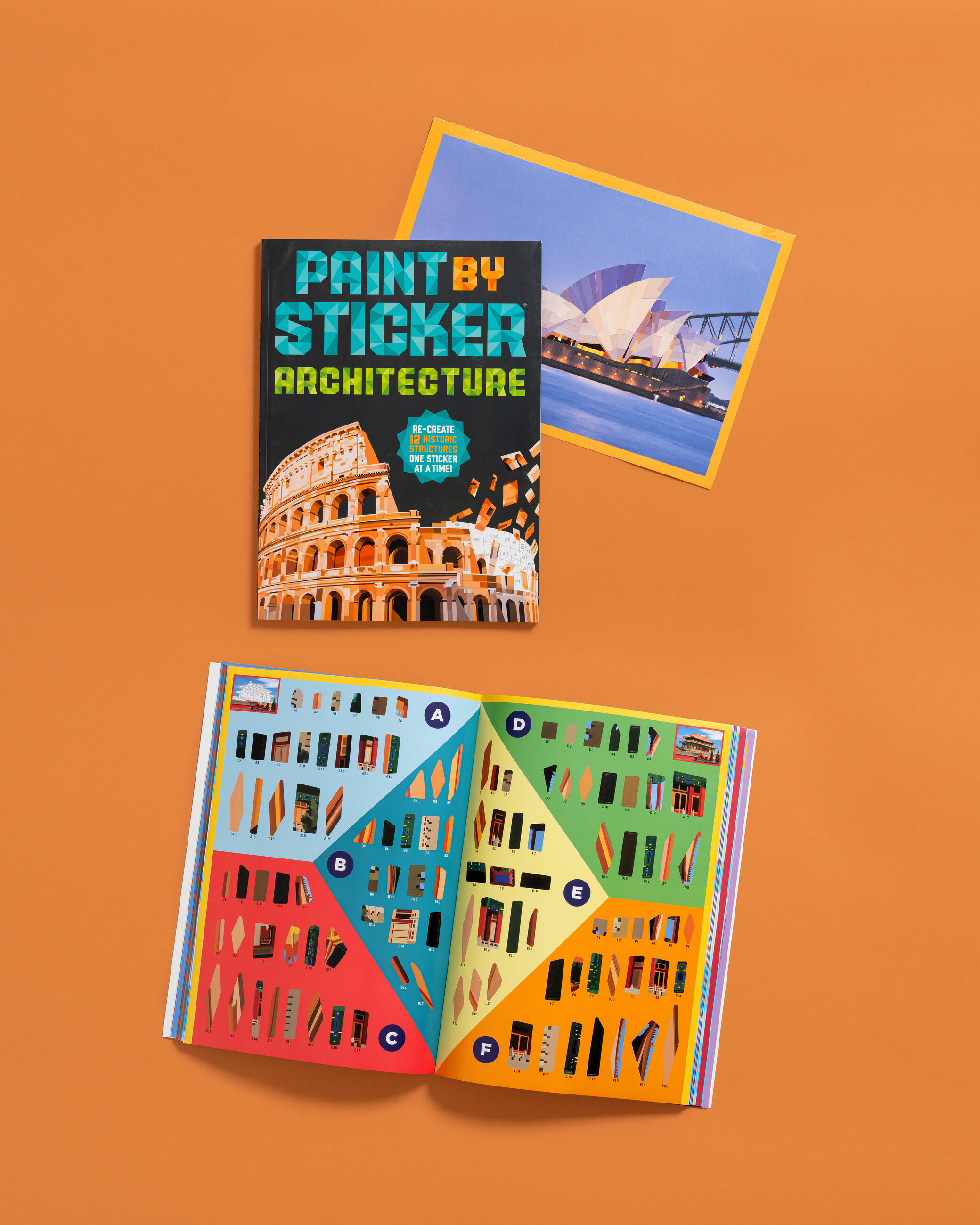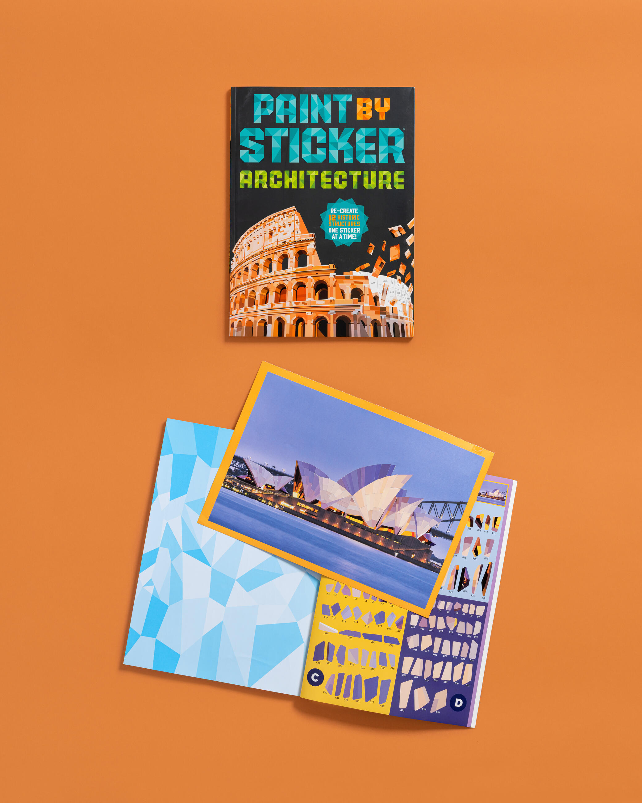 Paint by Sticker: Architecture contains everything you need to create 12 totally unique polygon paintings of famous buildings and structures—simply find a sticker (for example, A1), place the sticker in the spot labeled A1 on the corresponding sticker map, and watch your art come to life, sticker by colorful sticker. Create the signature curves of the Sydney Opera House; the impressive spindle-shaped towers of Barcelona’s La Sagrada Família; the iconic blocklike facade of Habitat 67 in Canada; and more. Plus the card-stock pages are perforated, so every finished piece can be easily removed for gifting or display.