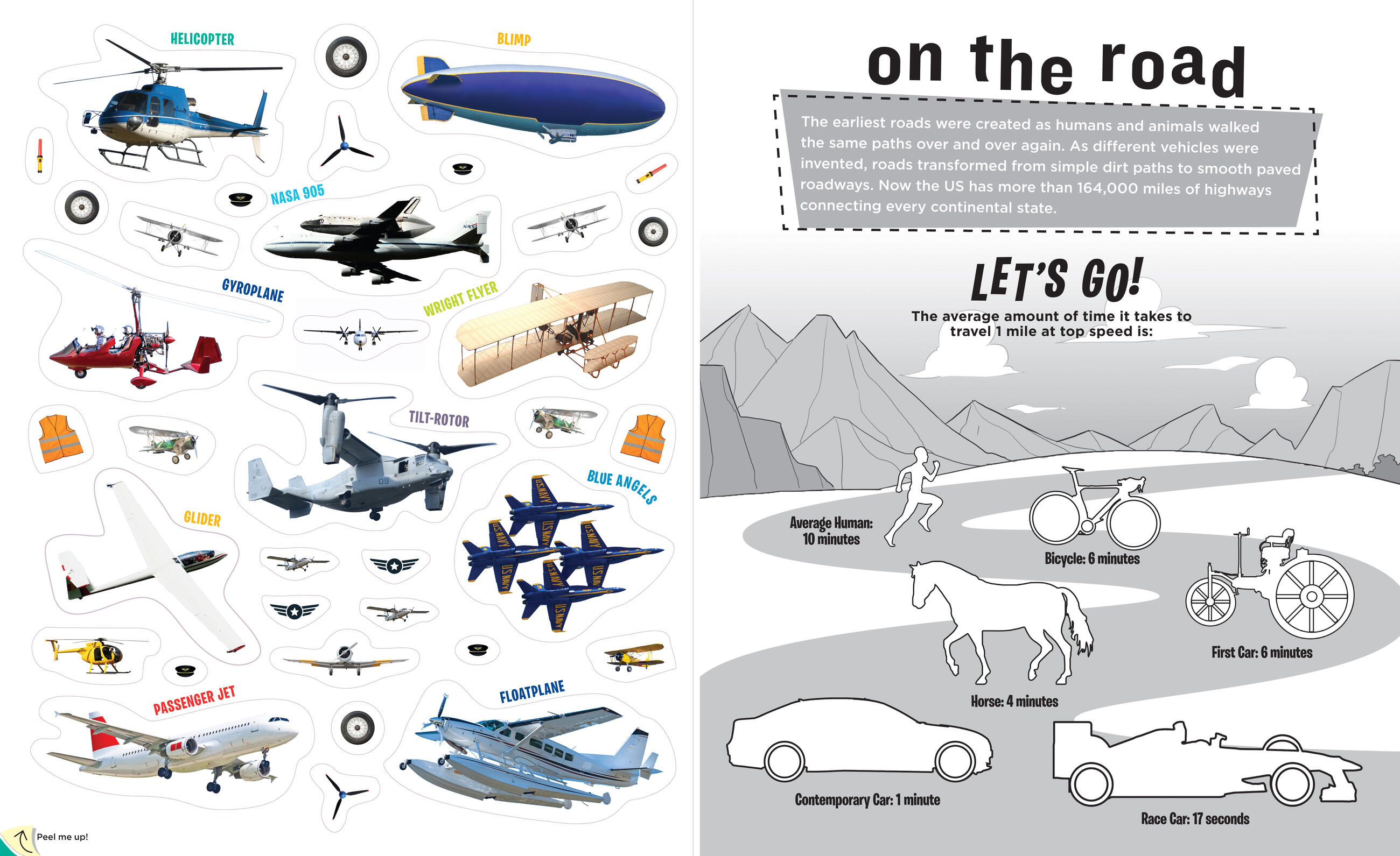 On your mark! Get set! Go! With hundreds of stickers featuring vehicles of all shapes and sizes, from the space shuttle to the horse and buggy, muscle cars to pirate ships, ice cream trucks, submarines, Zambonis, and more. Plus, put on an airshow, build a train, win a boat race, and invent a brand-new vehicle as you learn about the machines that take us over land, across the water, through the sky, and all around the world!