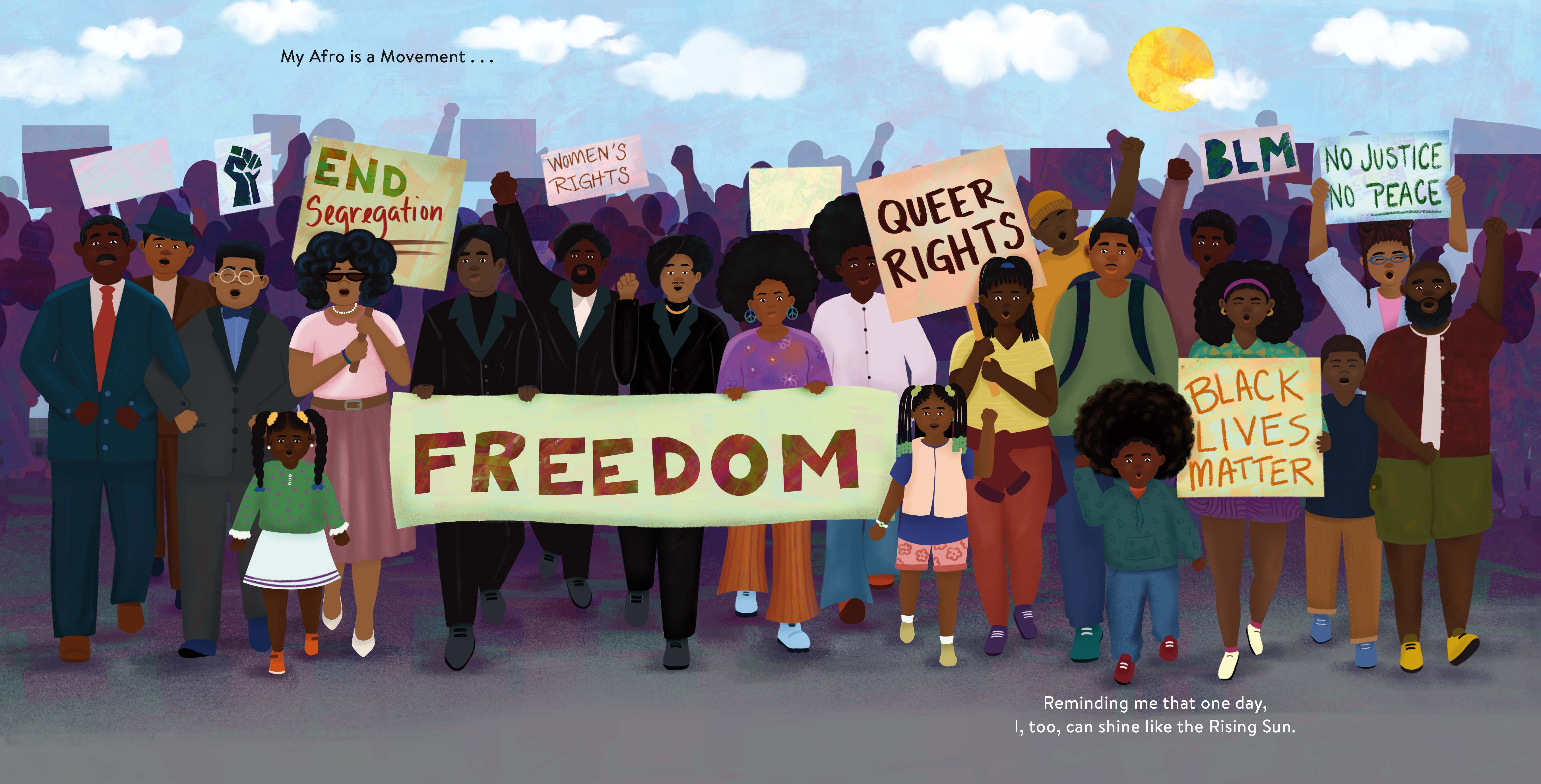 Black afros are more than just afros. They are a symbol of Black joy. They remind us to embrace our identity, cherish our culture, and remember our heritage. This stunning picture book is an ode to Black hair and a reminder to all children to see the beauty in other people—even those who don’t look like them.